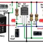 This circuit is for simple Transistor Based LED Alternator Blinker Circuit. Two LEDs blink one after another as this circuit uses two NPN transistors. This circuit is an astable multivibrator, which is also called an oscillator circuit. This project is good for beginners an it is used for learning transistor switching. It can be used […]