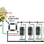 This tutorial teaches us about 35V Dual Output Power Supply Circuit. This circuit gives plus 35 volt and minus 35 volt. It is used for audio amplifiers and op-amp circuits. Circuit uses transformer, bridge rectifier, big filter capacitors. Output becomes +35V, -35V and ground. Circuit Working: Parts List: Component Specification Quantity Capacitors Electrolytic 4700uF 50V […]